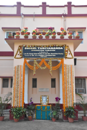 The newly built Nurses Hostel Building - 'Sevabrati Niwas' was inaugurated by Revered Swami Suvirananda Maharaj, General Secretary, Ramakrishna Math & Mission on 3rd March, 2024 in the august presence of Rail Vikas Nigam Limited (RVNL) officials from New Delhi. The function started with ribbon cutting ceremony, dedication of the building by offering puja and arati of the holy trio, followed by lectures and Narayan puja by the dignitaries.