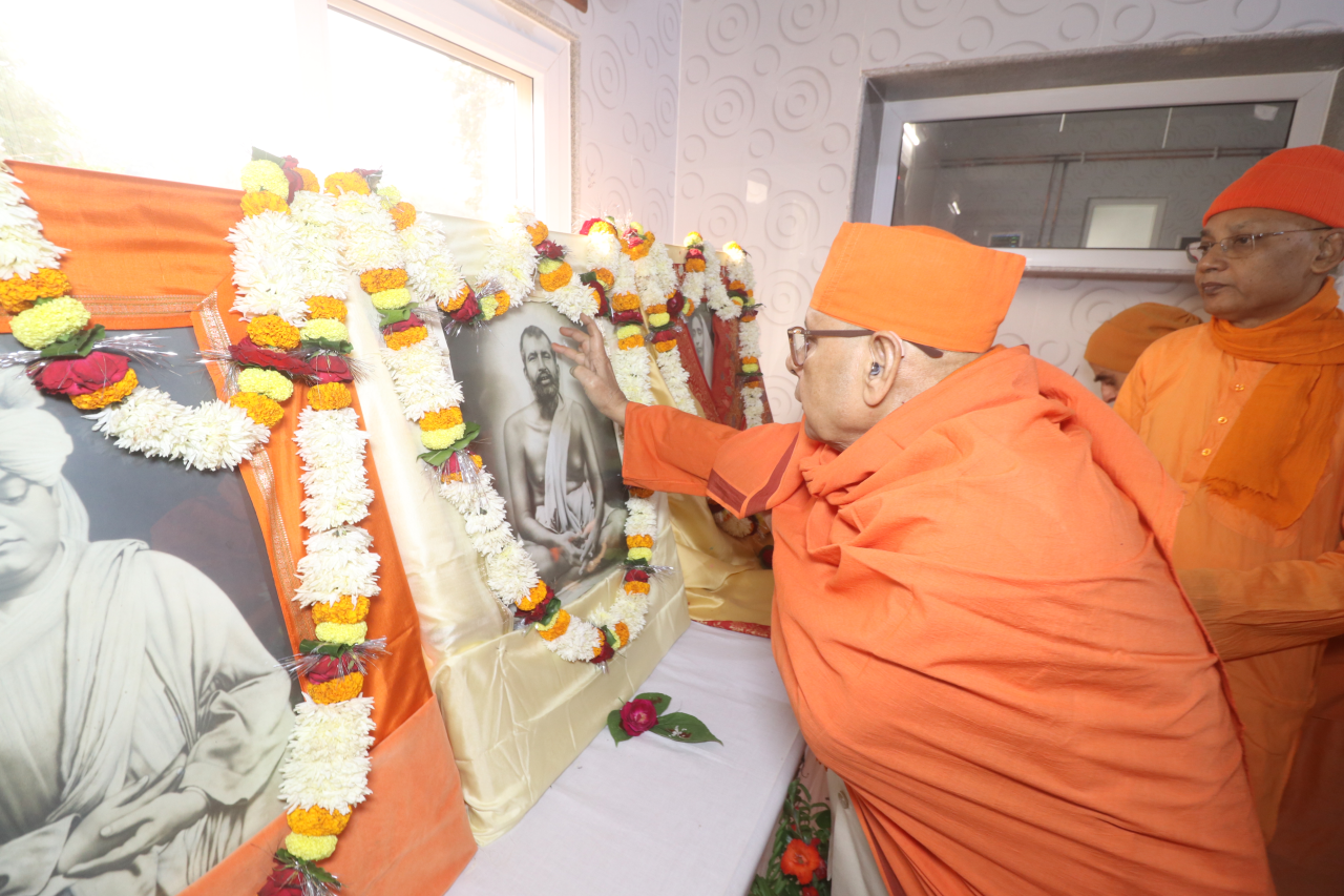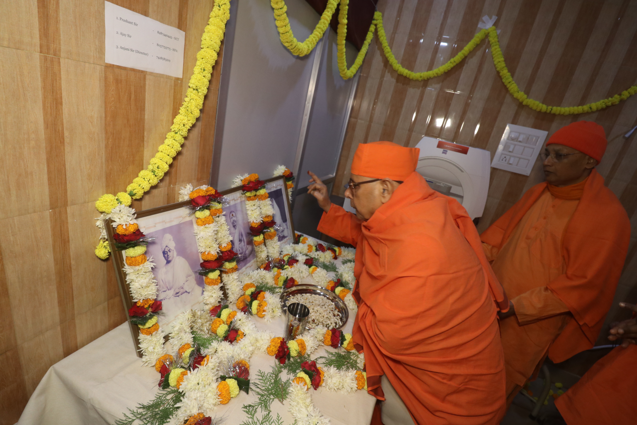 On 22-01-2023 Swami Vivekananda's Birth Anniversary Celebration was held in Sevashrama with special puja at Swamiji's temple and Rogi Narayan Puja in the Hospital. All the inpatients were ceremoniously worshipped and distributed Woollen Shawls, Books on Swamiji, Fruits etc. Hospital Wards were decorated by the respective departmental staff uniquely and various cultural programmes, tableaus, models were presented by them. Lunch Prasad was served to doctors, well-wishers and others. About 3,500 people took Prasad.