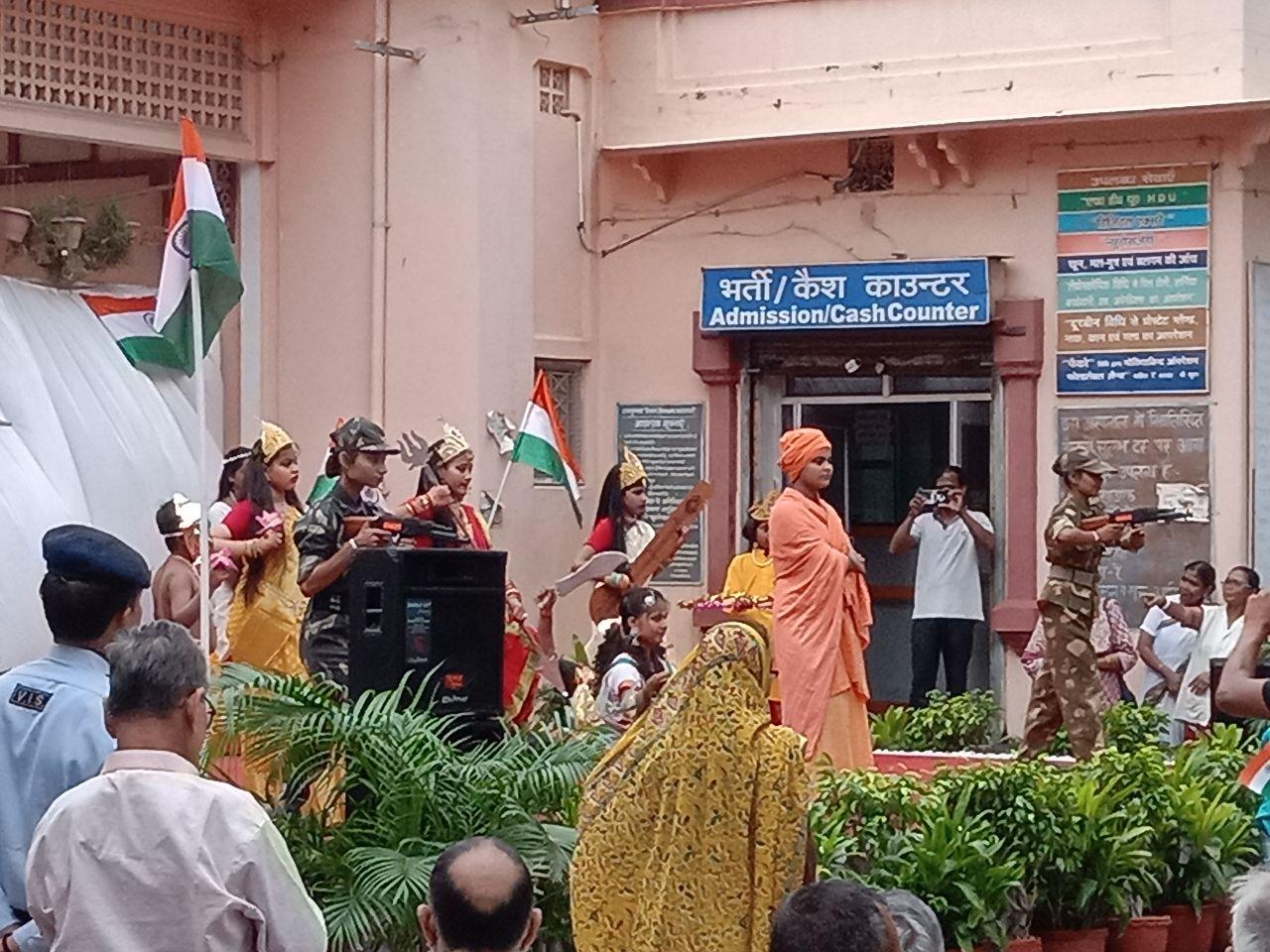 - On 15th August 2022, our Independence Day, Swami Vishwatmanandaji Maharaj, Adhyaksha, Ramakrishna Advaita Ashrama, Varanasi, hoisted the National Flag in Sevashrama Campus and delivered a short speech. Singing of the National Anthem followed. A dance drama titled ‘Vande Mataram’ was staged by the Nursing Students and others of Sevashrama.
